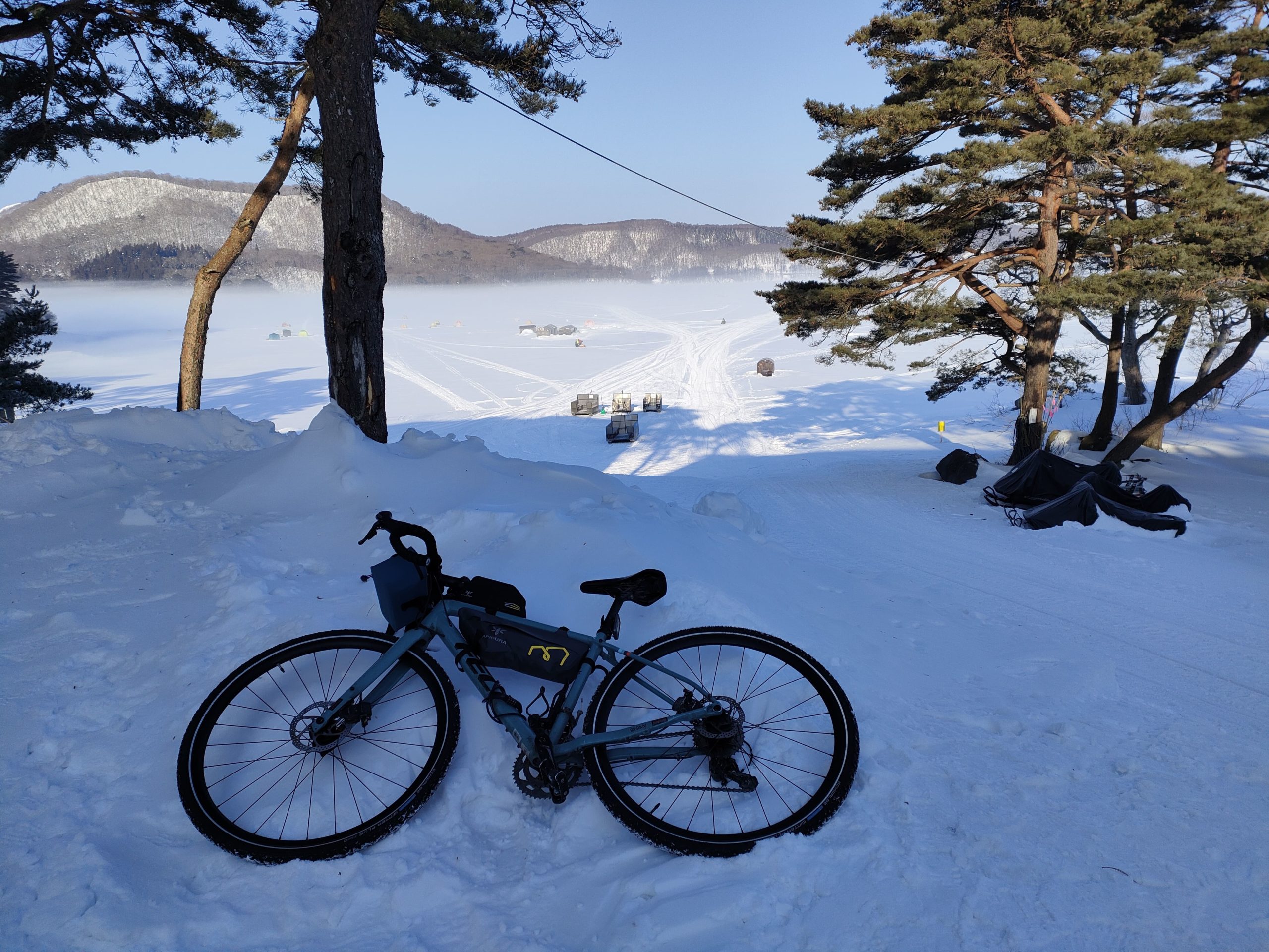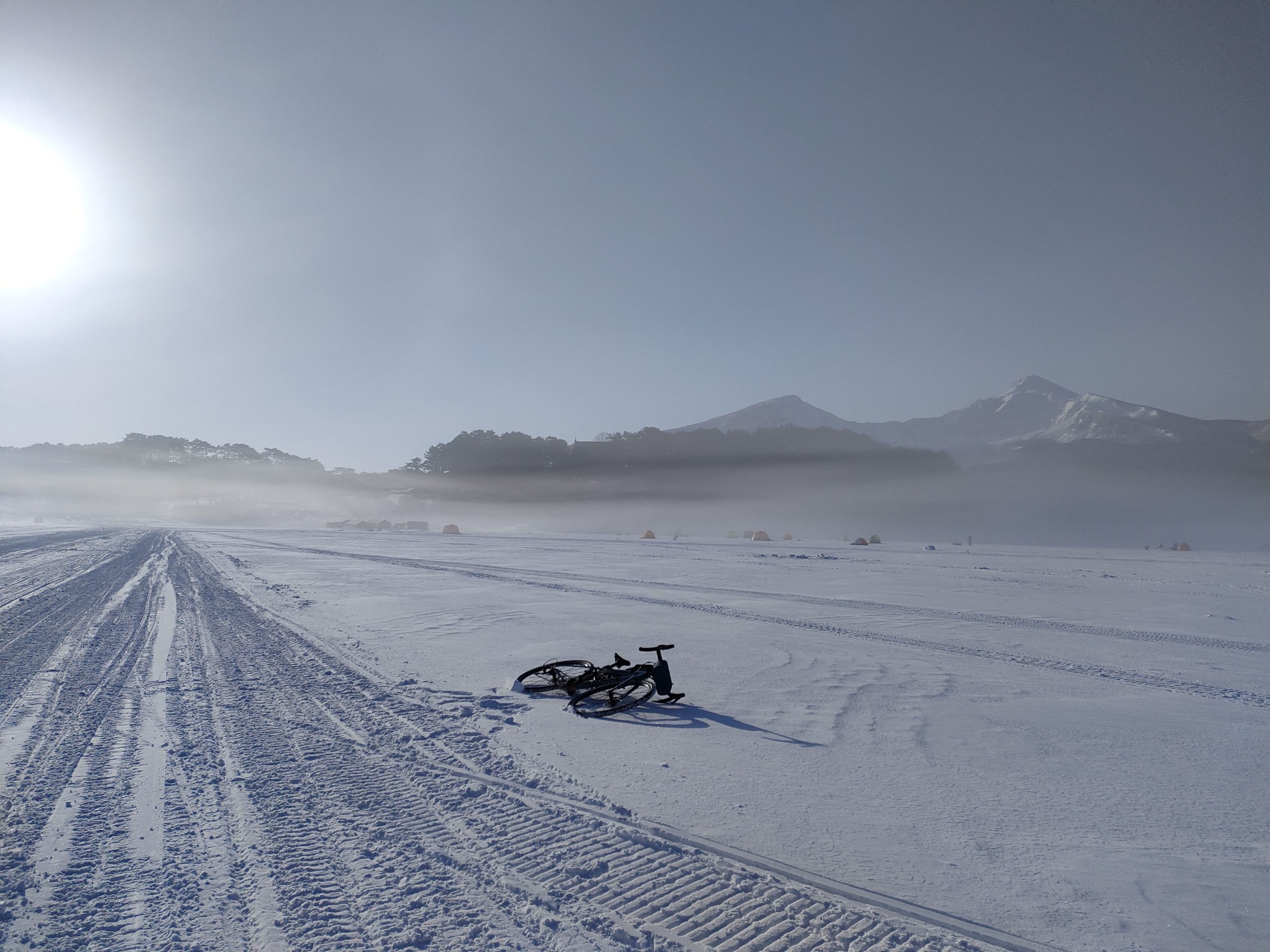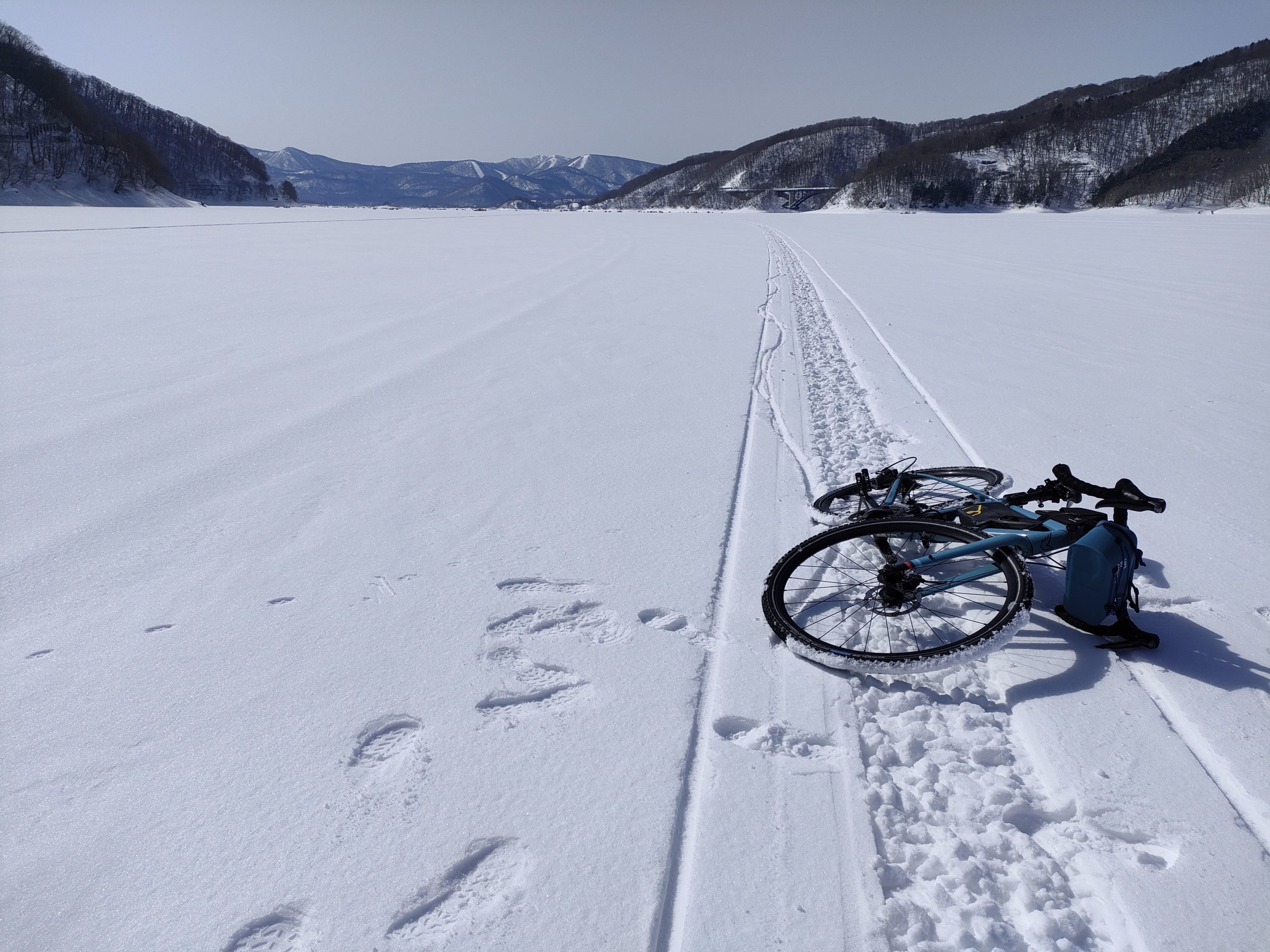 ・ジェットスキーや風がなければ、自分の自転車が雪を軋む音しか聞こえない。